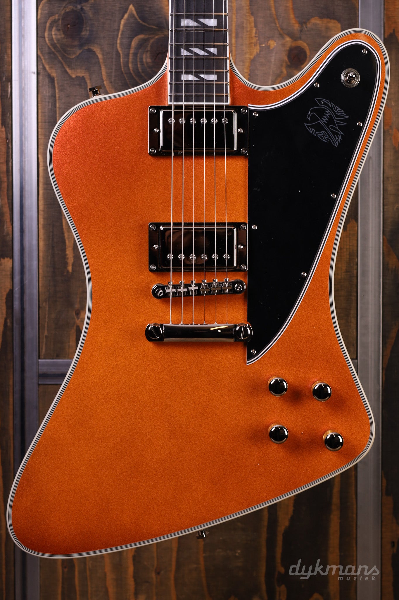 Based on the legendary Gibson Firebird – a design by car designer Ray Dietrich – this modern interpretation offers a unique blend of vintage character and contemporary innovations. The mahogany body with elegant 7-ply binding and ergonomic contours ensures both comfort and a premium look.