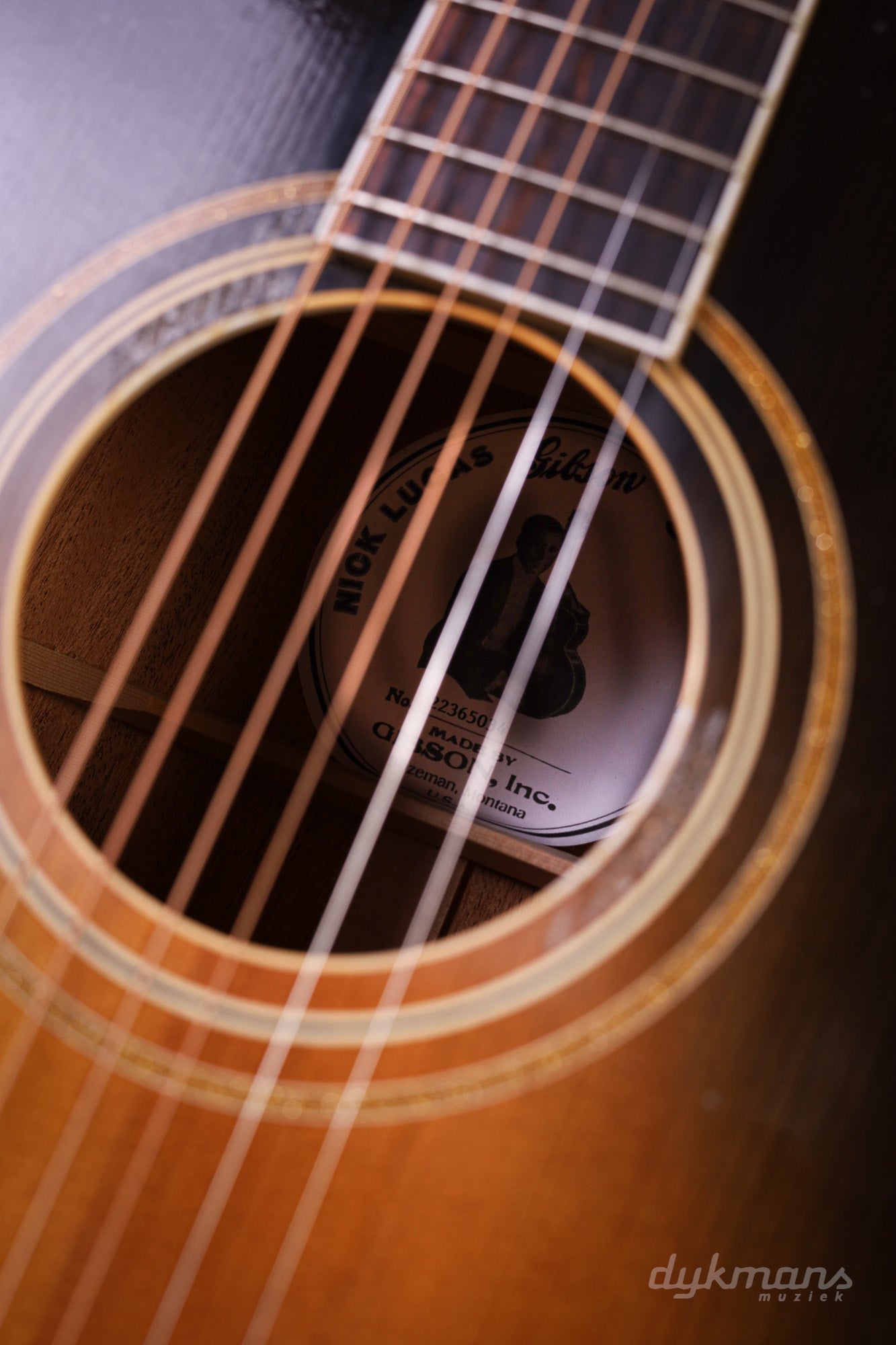 Neck & Fingerboard: C-shaped mahogany neck, 20-fret rosewood fingerboard with mother-of-pearl Nick Lucas inlays.