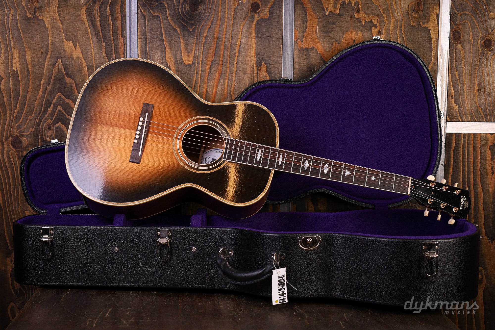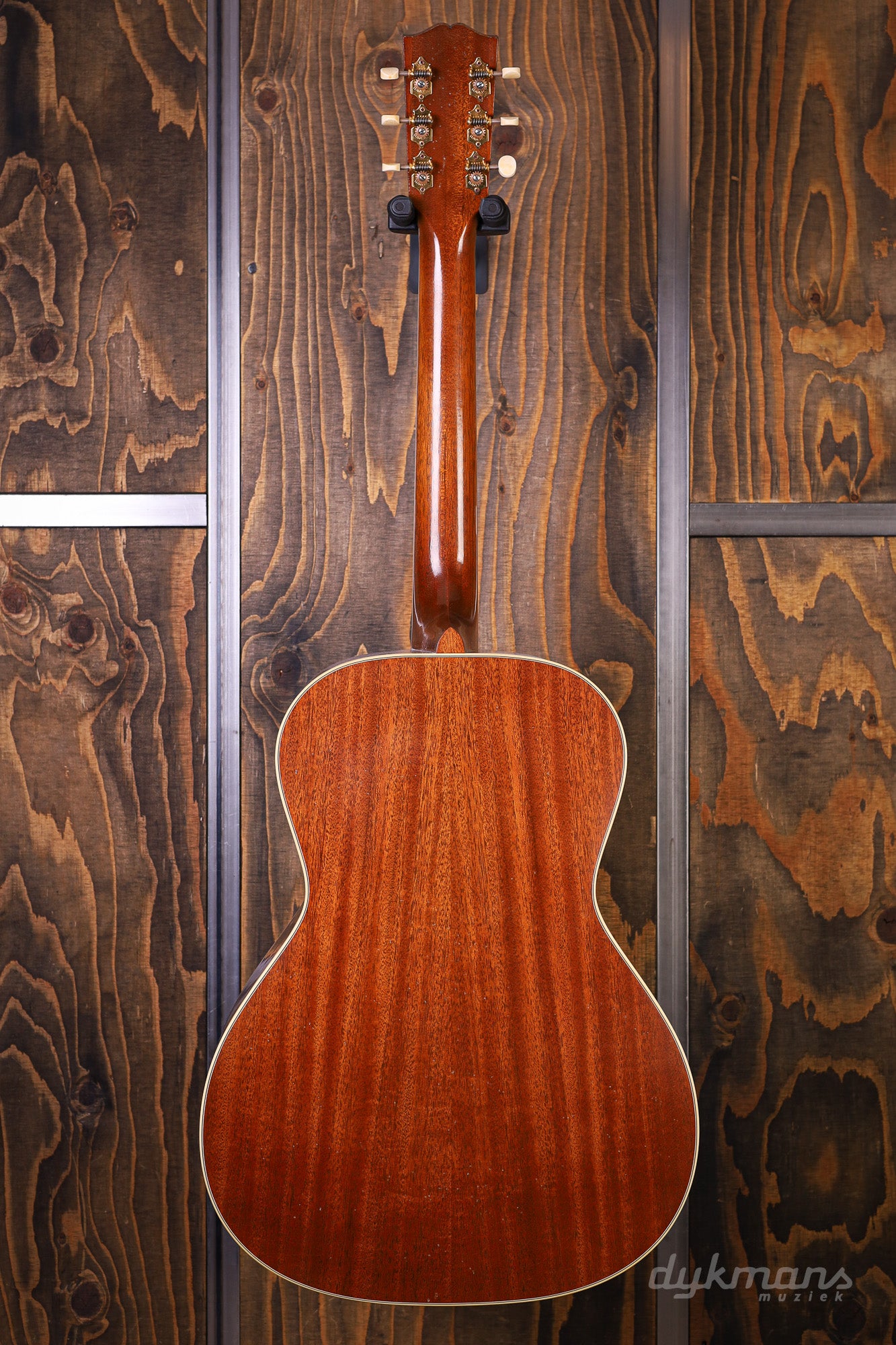 Body: Mahogany, deeper than an L-00, with a thermally aged red spruce top. Body depth: approximately 10.37 cm at the headstock and approximately 11.48 cm at the tailpiece.
