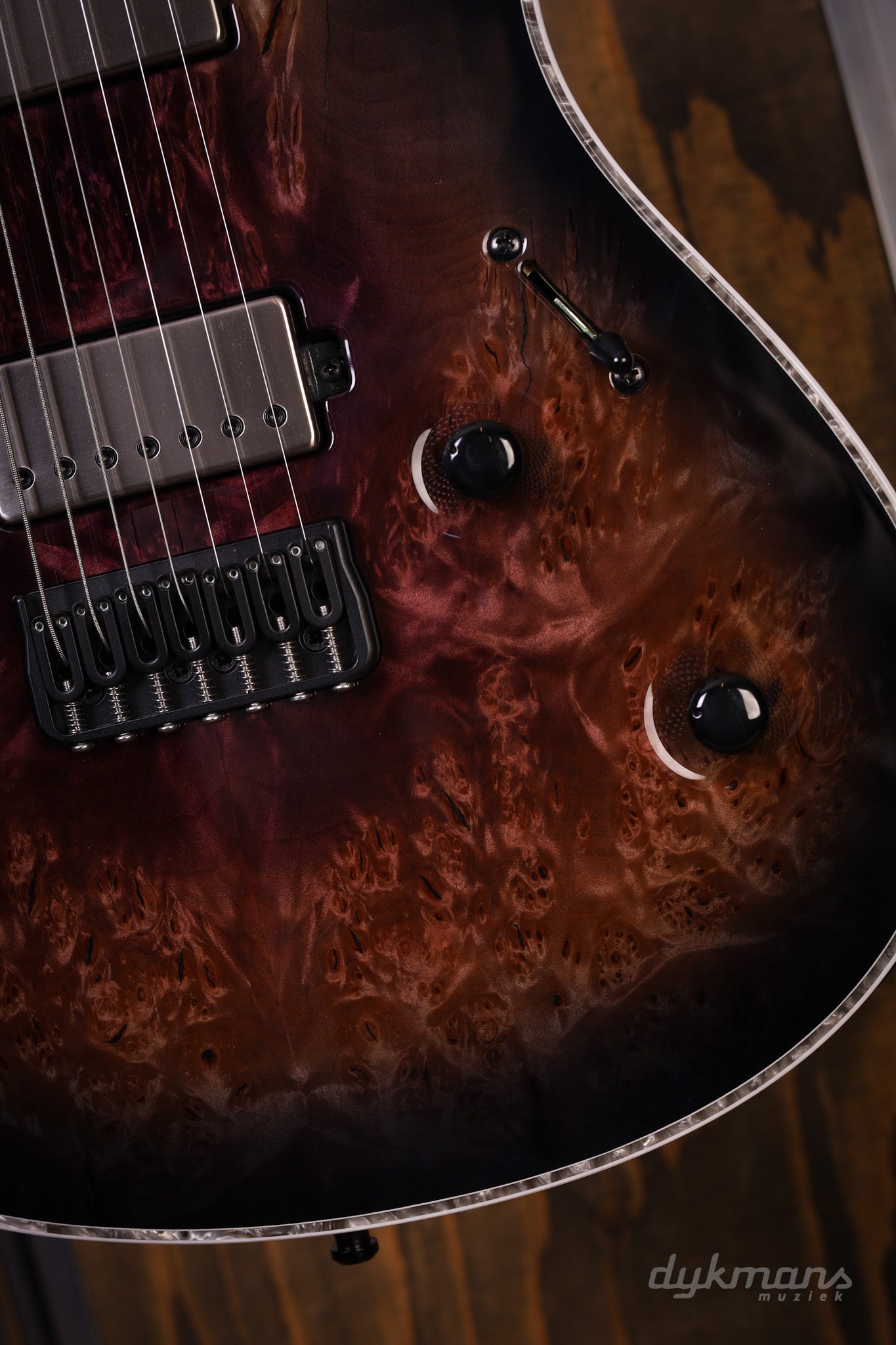 Met zijn ergonomische body, uitgebalanceerde gewichtsverdeling en uitstekende bouwwijze is de Mayones Regius 7 Burl Maple 5A Galaxy Eye Purple niet alleen een instrument van wereldklasse, maar ook een plezier om te bespelen. Of je nu metal, prog, jazz of fusion speelt, deze gitaar levert de kracht, precisie en tonaliteit die je nodig hebt om je spel naar een hoger niveau te tillen.