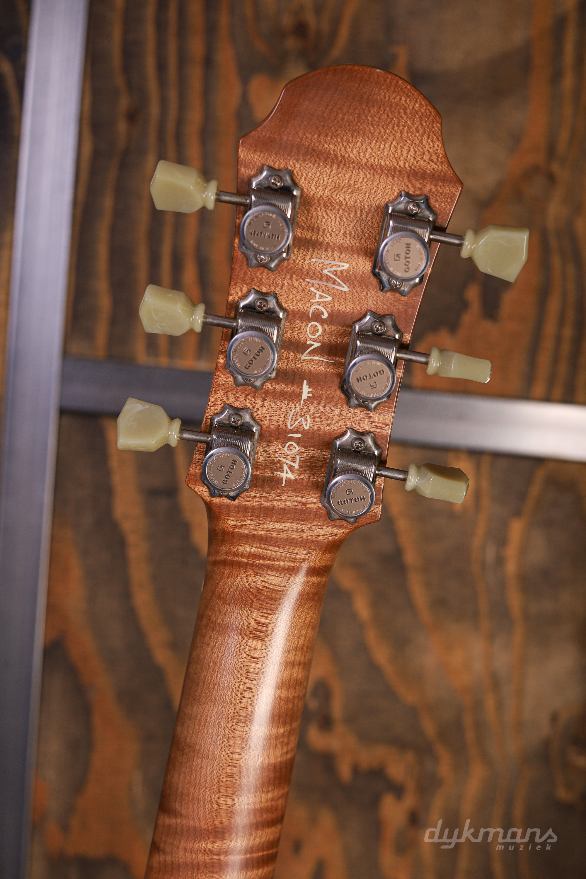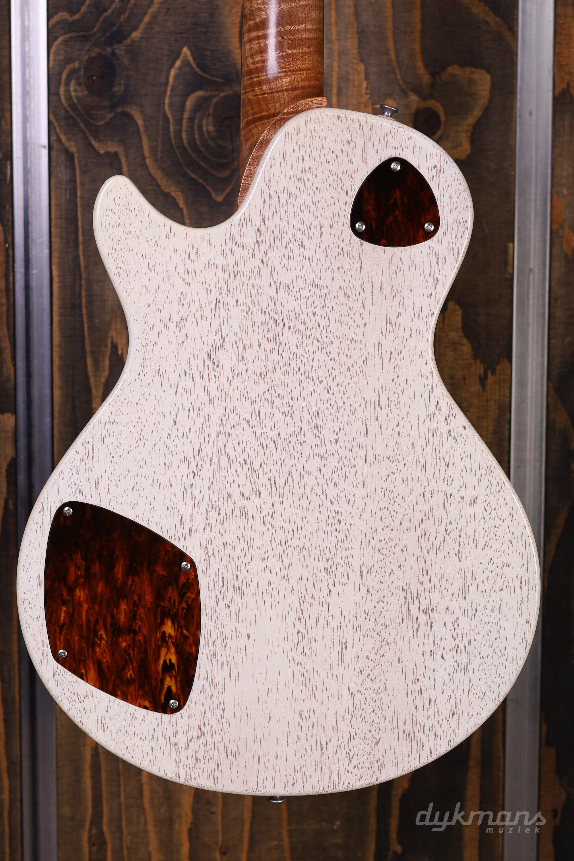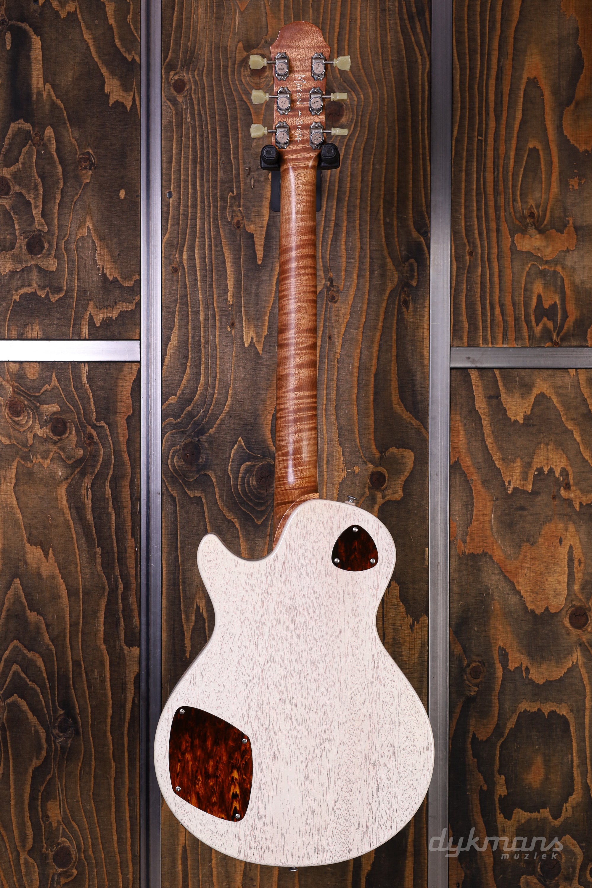 The Macon Junior by Patrick James Eggle is one of our favorite guitar models. This "stripped" version of the Macon, without a maple top and a slightly rougher appearance, is a perfect mix between impressive craftsmanship and Mojo. This Macon Vintage was specially built for the Guitar Summit 2024 and is a real eye-catcher. The Nitro Aged Blonde Finish and Roasted Flame Maple neck are the first things that stand out. If you look a little longer, you will discover the very chic binding around the body. The ebony fingerboard with its 12" radius not only looks beautiful; it makes the neck of this Macon a true dream under your fingers. Tonally, this Macon Vintage does more than justice. The combination of the Mojo humbucker and P-90 gives you a wide palette of low-output, clear sounds. The humbucker has a nice, subtle compression and has a very impressive split coil mode. The P-90 is wide open and extremely dynamic - ideal for dirty, dangerous blues! This Macon comes with a luxury TKL case.
