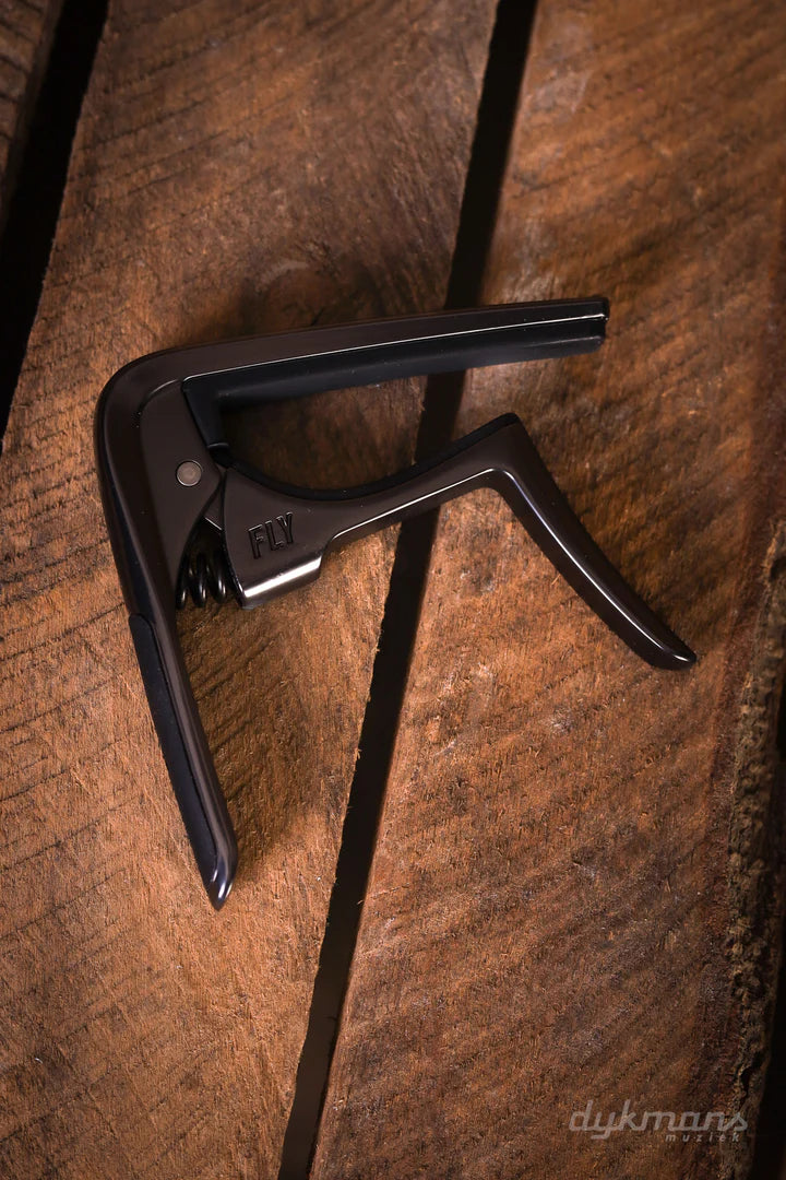 The Trigger Fly Capo builds on our most popular capo design with better handling and tuning stability than ever. The grip is streamlined for a more comfortable, ergonomic feel, and a specially engineered custom spring mechanism applies balanced pressure for easy placement and precise intonation up and down the neck—even as high as the 7th fret of most acoustics. Thanks to an optimized fret pad, chords and single notes alike will ring out with smooth clarity.