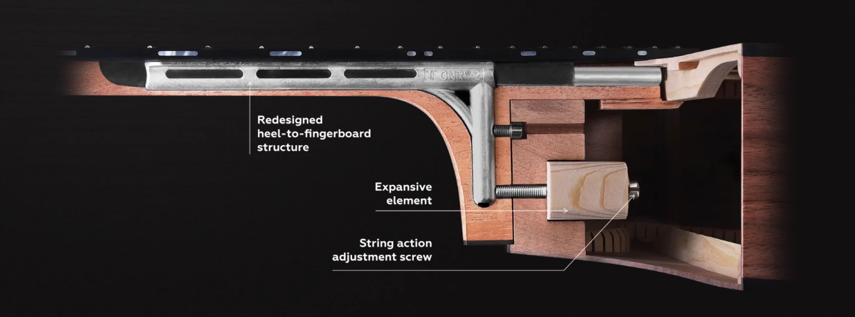 The technical heart of this guitar is the CNR Active Truss Rod System, the most advanced neck system Furch builds. The CNR Active system offers exceptional neck balance and stability, even with fluctuating temperatures and humidity. Furthermore, the neck is easily and precisely adjustable to your personal playing preference, without tools or a technician. On an instrument of this level, that is not a detail but a core quality: the Red Deluxe always plays exactly how you want it to.
